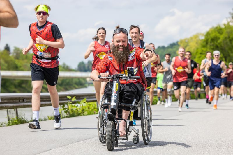 Auf der ebenen Strecke in Salzburg haben auch Rollstuhlfahrer entlang der Salzach ihren Spaß. © Wings for Life World Run