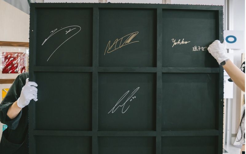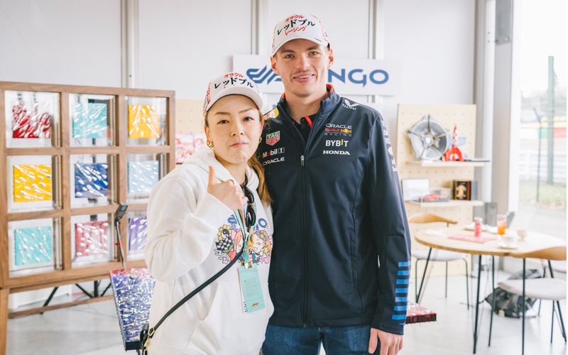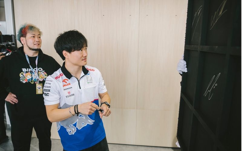 また、作品の背面にはF1ドライバーのマックス・フェルスタッペン氏、角田裕毅氏、リアム・ローソン氏のサインと、瑶子女王殿下のサインが書かれています。