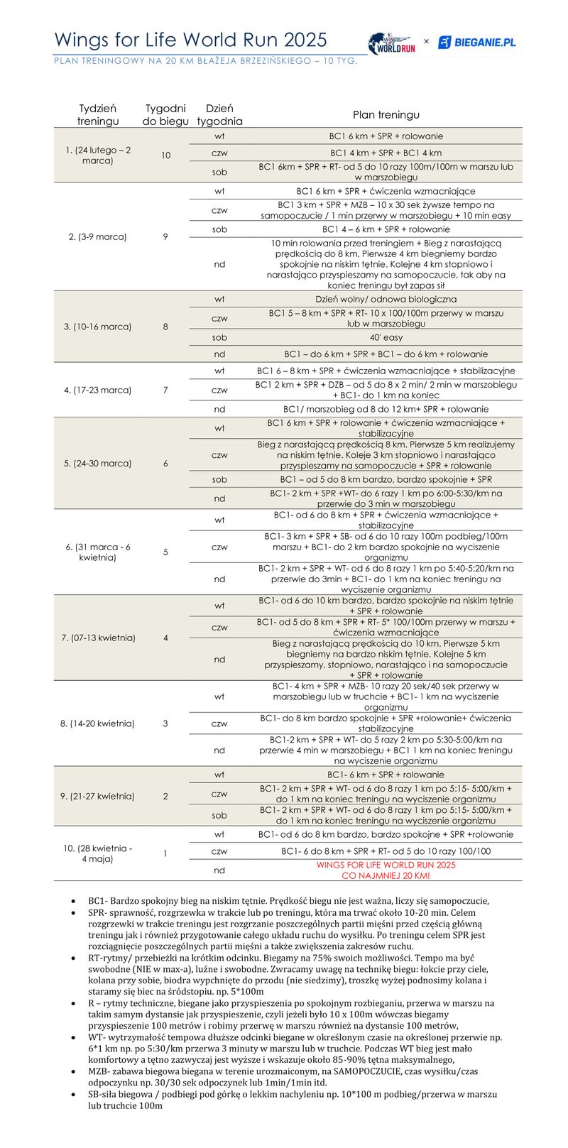 14 stycznia 2025Sprawdź plan treningowy do Wings for Life World Run na 20 km od Błażeja BrzezińskiegoWhatsAppTwitterFacebookLinkedInWhatsAppTwitterFacebookLinkedInDowiedz się więcej