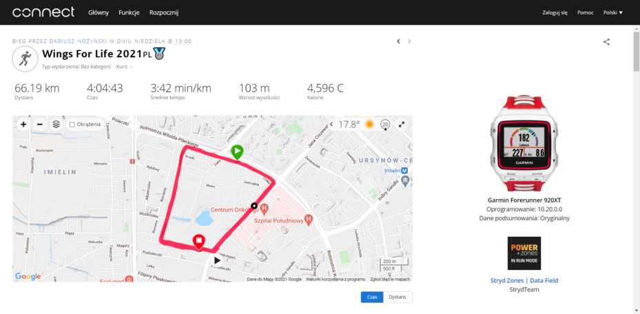 Zobacz zapis biegu Darka na platformie Garmin Connect – tutaj