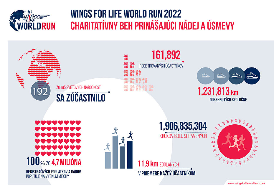 Všetky výsledky, ako aj informácie o tom, ako sa zaregistrovať na beh v roku 2023, nájdeš na www.wingsforlifeworldrun.com.